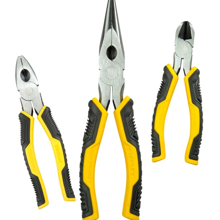 3-osainen pihtisarja, joka sisältää yhdistelmäpihdit, sivuleikkurit ja kärkipihdit. Muotoillut kahvat parantavat käyttömukavuutta.