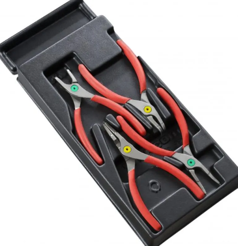 Facom MOD.PCSN on sisäosamoduuli neljällä lukkorengaspihdillä. Sisältää pihdit sekä ulos- että sisäänpäin aukeaville lukkorenkaille. 10-60 mm lukkorenkaille.
