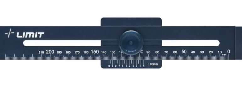 Piirtomitta kromattua alumiinia, merkitsemiseen reunan avulla. Asteikko.