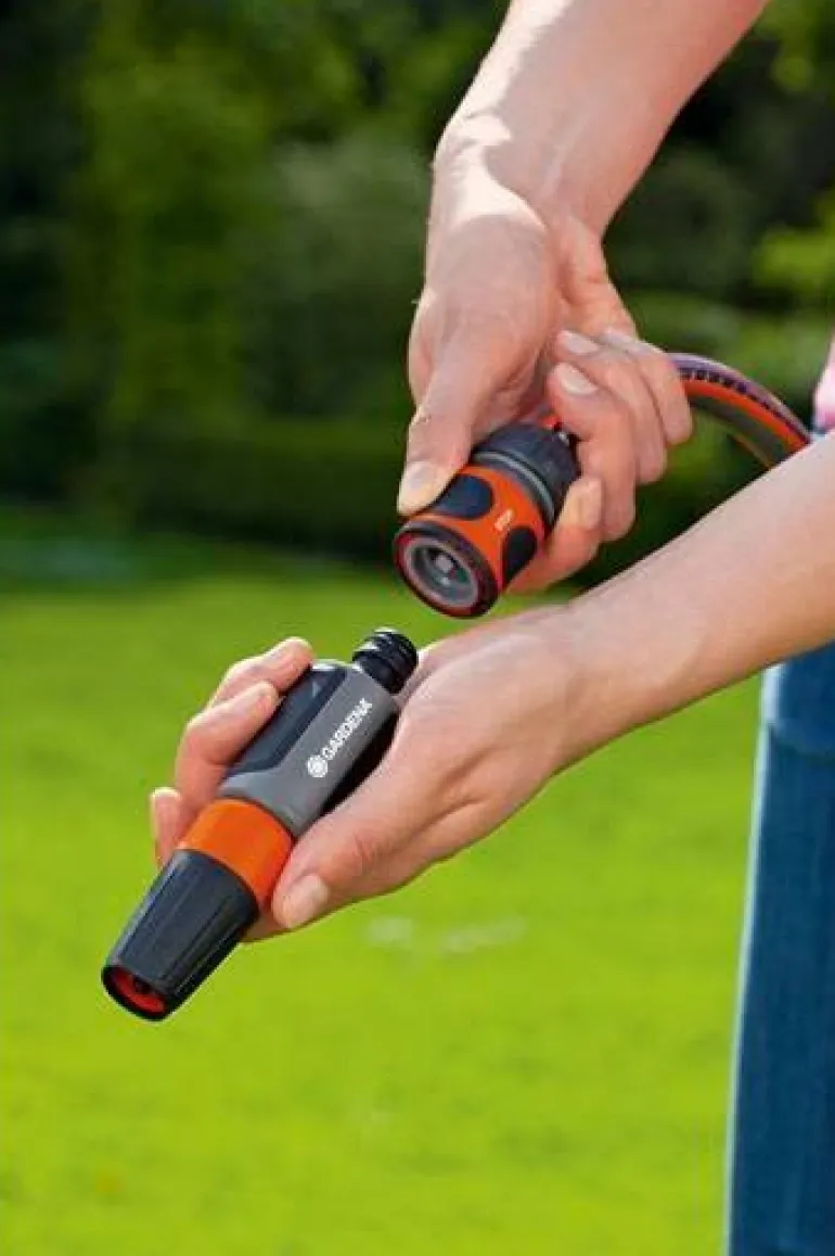 GARDENAn sulkuliitin on käytännöllinen letkuliitin, jonka innovatiiviset ominaisuudet helpottavat puutarhan kastelutehtäviä. Liitin kiinnitetään letkun loppupäähän, ja se on erityisen kätevä silloin, kun haluat vaihtaa kastelulaitetta kesken kastelun. Automaattinen vedenpysäytystoiminto katkaisee veden virtauksen välittömästi ja käynnistyy uudelleen vasta, kun liität siihen uuden kastelulaitteen, kuten kastelupistoolin. Ominaisuus säästää ylimääräiseltä vaivalta, sillä sulkuliitintä käyttäessäsi sinun ei tarvitse kävellä sulkemaan hanaa.