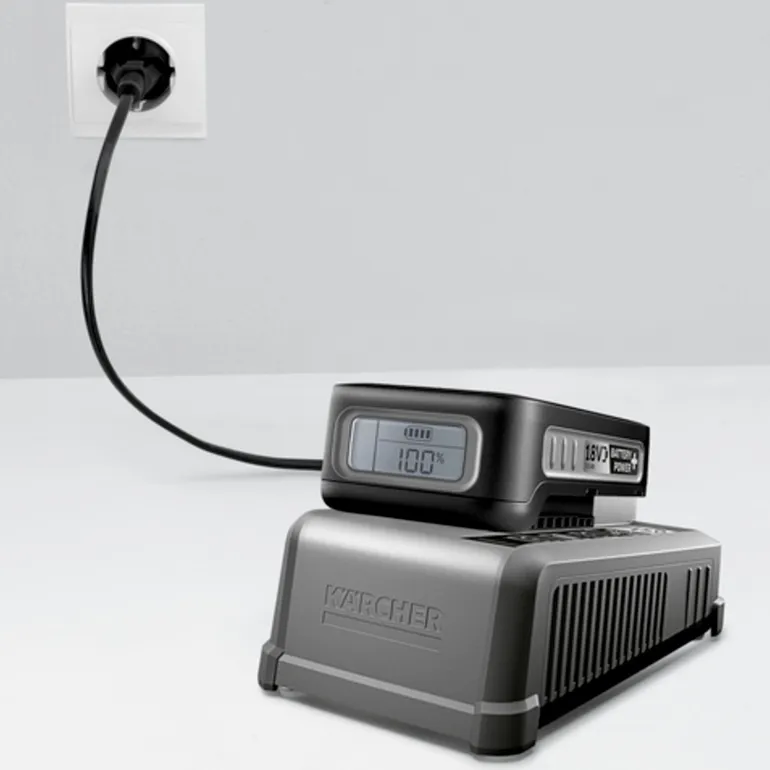 Kärcher Power+ 18/60 on pikalaturi, joka on yhteensopiva kaikkien 18 V Kärcher Battery Power+ -litiumioniakkujen kanssa (latausvirta max. 6 A). LED-näytöstä ja merkkivaloista näet heti latauksen etenemisen ja sen valmistumisen. Alhainen virrankulutus valmiustilassa. Mahdollisuus kiinnittää laturi seinään.