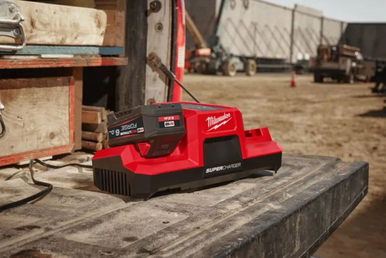 Milwaukee M18 DBSC on M18™ 2-paikkainen pikalaturi, joka tuottaa 6x nopeamman akun latauksen 80 prosentin kapasiteettiin vs. tavallinen laturi. Lataa M18™ REDLITHIUM™ FORGE™ 6,0 Ah -akun 80 prosenttiin 15 minuutissa.