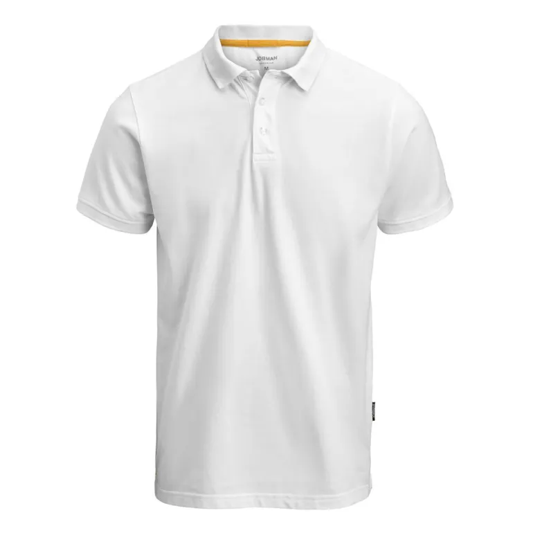 Jobman 5566 on pikeepaita single lacost -neulosta, nappilista edessä (3 nappia sävy sävyyn). Oranssi reunus kauluksen sisäpuolella ja halkioissa.