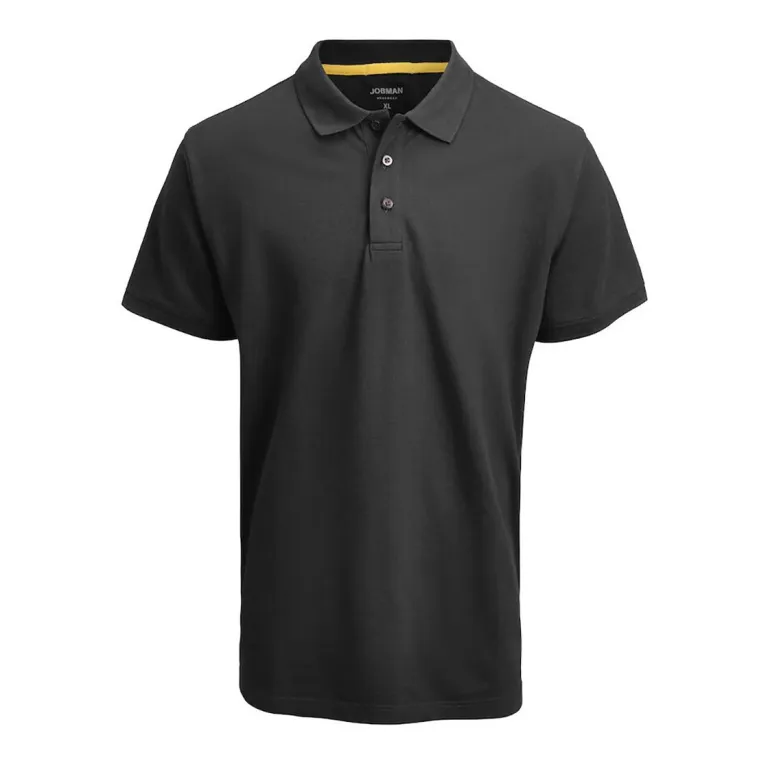 Jobman 5566 on pikeepaita single lacost -neulosta, nappilista edessä (3 nappia sävy sävyyn). Oranssi reunus kauluksen sisäpuolella ja halkioissa.
