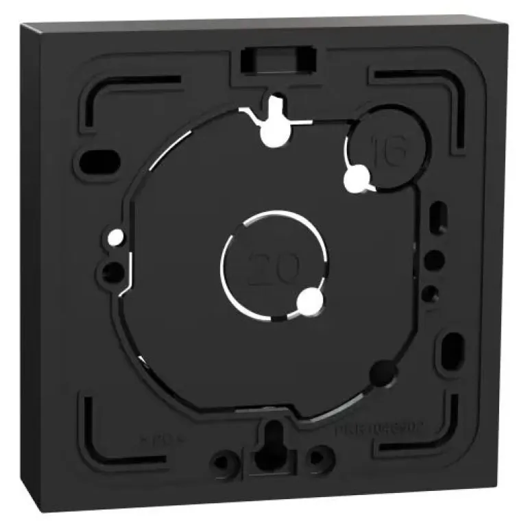 ELKO One 1-pintakojerasia matala, musta. Tämä matala versio on optimoitu kytkimille, joissa on ruuviliittimet. Kun asennus tehdään olemassa olevan upporasian päälle, poistamalla pintakojerasian pohja, voidaan myös matalaan pintakojerasiaan asentaa tilaa vaativia tuotteita, kuten säätimiä. Tuotteen mitat ovat (W) 87 mm x (K) 87 mm x (S) 29 mm.
