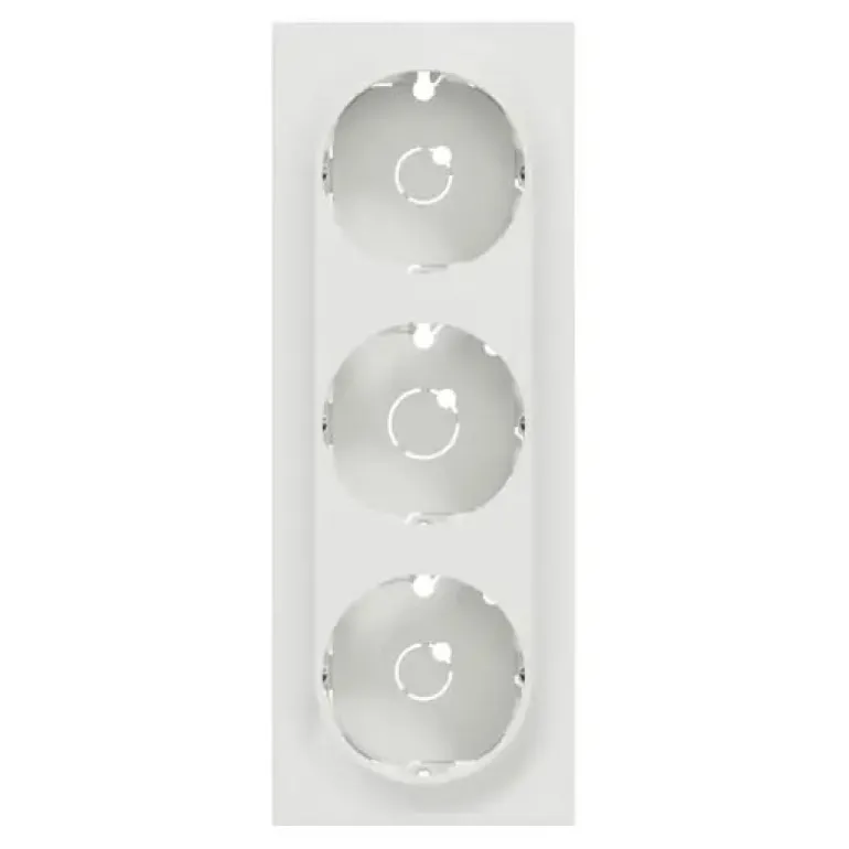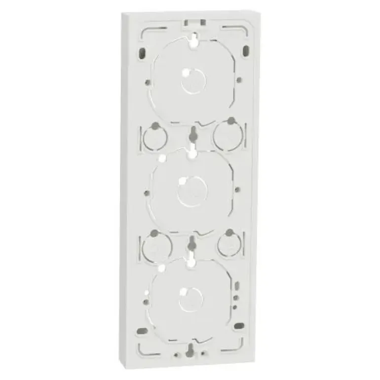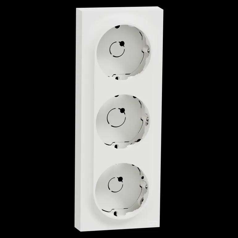 ELKO One 3-pintakojerasia matala. Tämä matala versio on optimoitu kytkimille, joissa on ruuviliittimet. Kun asennus tehdään olemassa olevan upporasian päälle, poistamalla pintakojerasian pohja, voidaan myös matalaan pintakojerasiaan asentaa tilaa vaativia tuotteita, kuten säätimiä.
