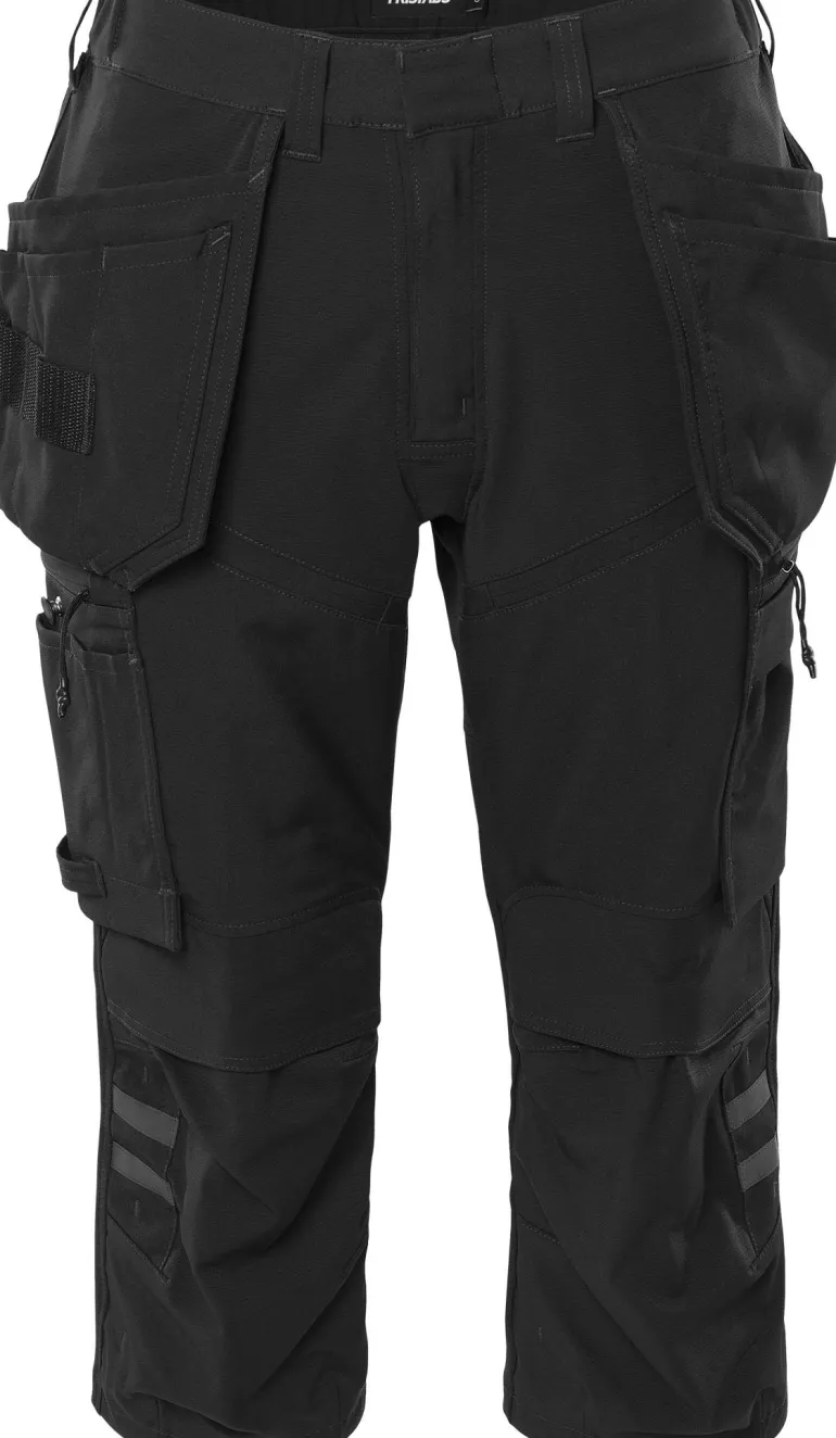 Kevyistä 4-suuntaan joustavista materiaaleista valmistetut rakentajan piraattihousut, jotka on pääosin valmistettu kierrätetystä polyesterista. Mukavat työhousut, joissa irrotettavat riipputaskut, joustavat ripstop-vahvikkeet ja joustavat polvitaskut.