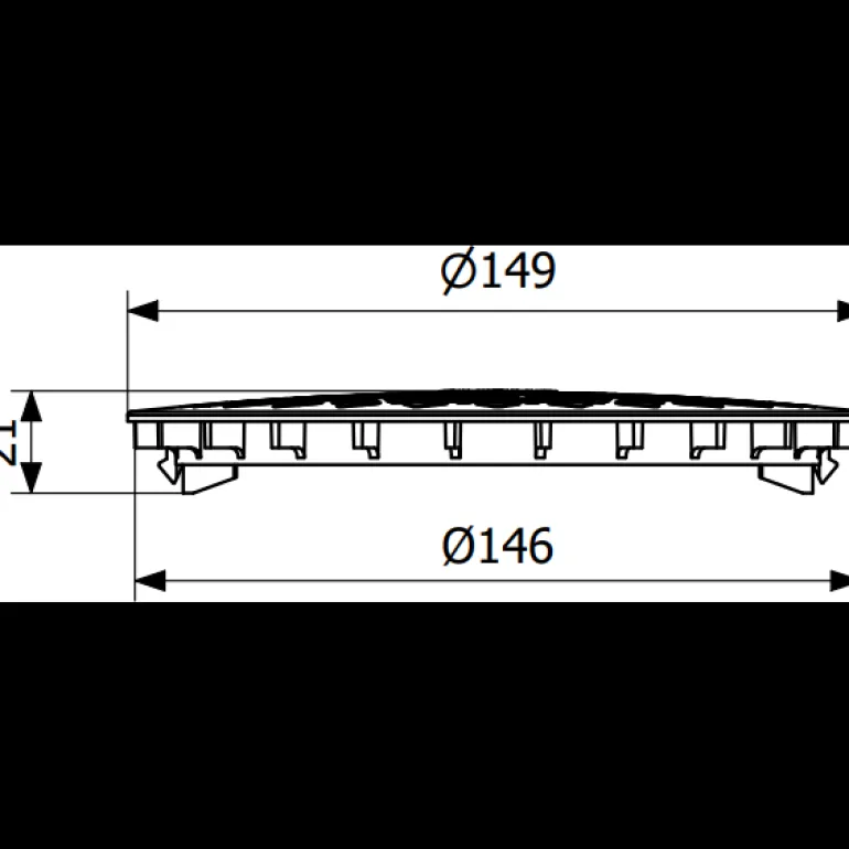 Pisarakansi 150 mm, sopii vakiokaivoihin 150 mm. Irrotettava keskiosa esimerkiksi kylpyammetuloa varten. Muovimattoa varten.