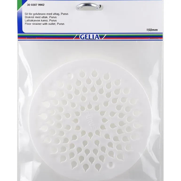 Purus Drop on pisarakansi 150 mm, sopii vakiokaivoihin 150 mm. Irrotettava keskiosa esimerkiksi kylpyammetuloa varten. Muovimattoa varten.