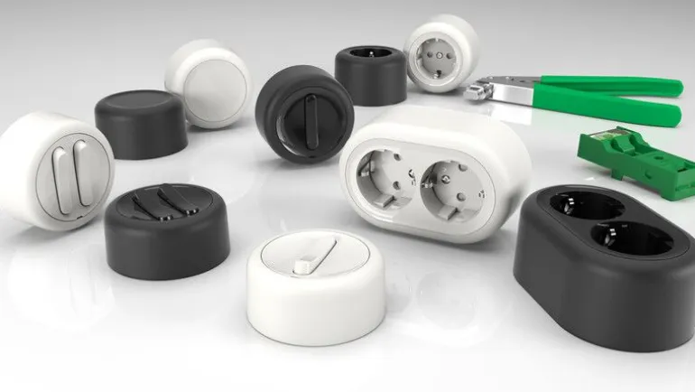 Schneider Electric Renova pinta-asennettava 2-pistorasia, 16 A /250 V. 2 lisäliitintä. Kotelointiluokan IP21 mukaisessa asennuksessa johto tuodaan kojeelle sivulta tai alhaalta. IP20 ilman muoviosia.