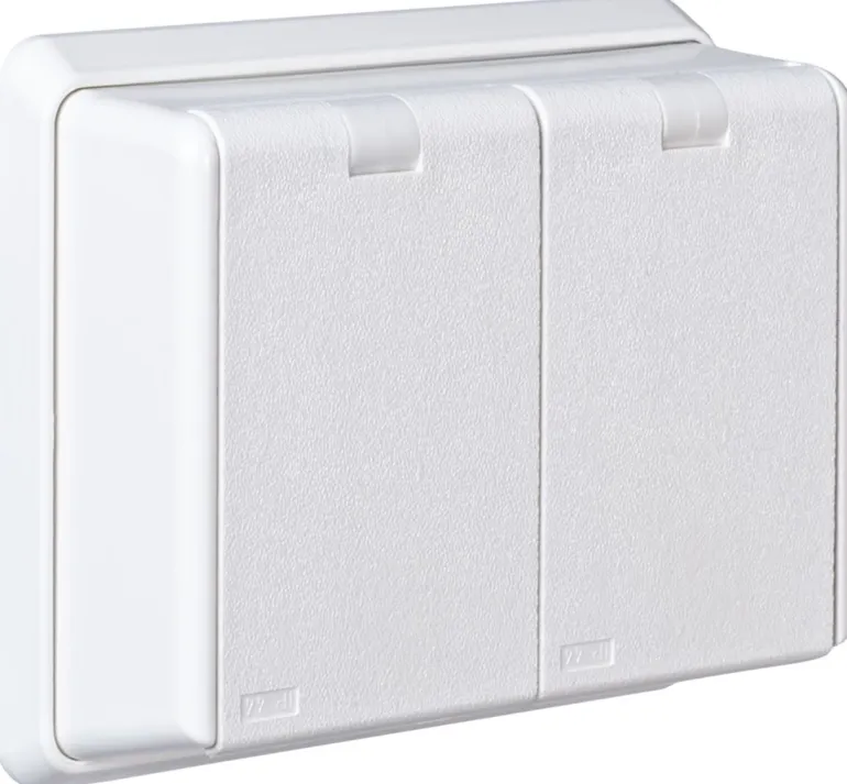 Elko EKO07478 on valkoinen uppoasennettava pistorasia, IP44. Maadoitettu ja ruuvien kiinnitysväli 60 mm. Varustettu itsesulkeutuvalla kannella ja valmistettu halogeenittomasta kestomuovista. Kaksinkertaiset liitännät vaihetta kohti. Toimitukseen sisältyy kojesuojus.