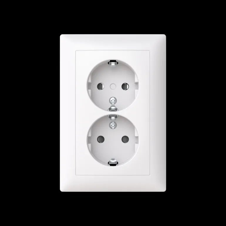 SAGA™ matala 2-osainen pistorasia peitelevyllä. Kokopeitelevyn valmistukseen on käytetty biopohjaista muovia. Pistorasiassa on liittimet kutakin kosketinta kohden ja niihin voi kytkeä max 4 johtoa (haaroitusmahdollisuus). Liittimet on hyväksytty ML ja MK johtimille. Ei potentiaalivapaita liittimiä. Pistorasian runko on kosketussuojainen ilman peitelevyä. Muoviraaka-aineessa erittäin korkea UV-suojaus. Valkoinen RAL9003.