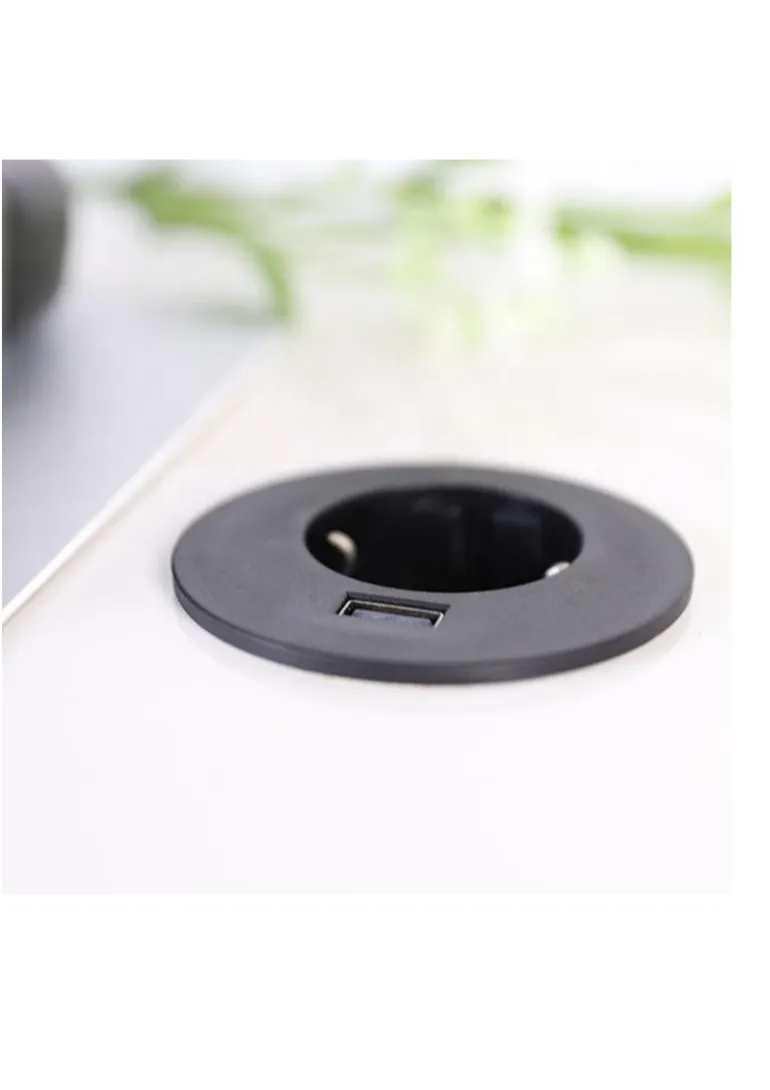 Rutab LOOP2 on 1-osainen pistorasia USB A -portilla. Uppoasennettava ø60 mm reikään pöytään tai tasolevyyn jonka enimmäispaksuus noin 50 mm.