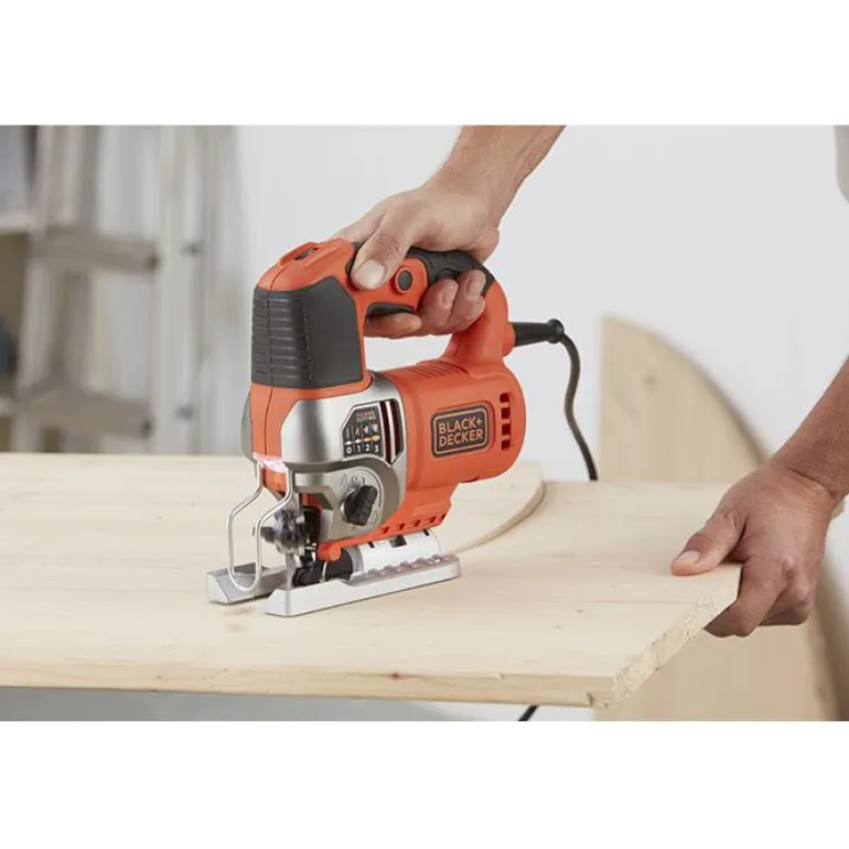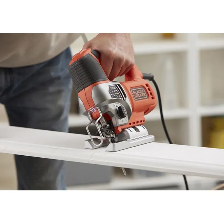 Black & Decker BES610K-QS on säädettävänopeuksinen 610 W pistosaha, 19 mm iskunpituus, jiirauskulma jopa 45° ja puun leikkuusyvyys jopa 90 mm. Voimakkaalla moottorillaan pistosaha soveltuu puun, metallin ja muovin leikkaamiseen.