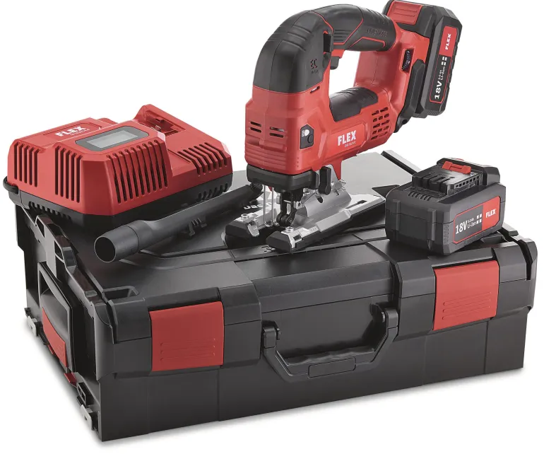 Flex JSB18.0-EC on akkukäyttöinen pistosaha elektronisella ohjausjärjestelmällä (EMS), joka suojaa konetta, pidentää käyttöikää ja lisää tehokkuutta. Uuden sukupolven harjattomalla moottorilla, joka on erittäin tehokas ja suorituskykyinen. Sahassa on automaattinen käynnistys, ylikuormitussuoja ja portaaton sahan nopeuden säätö potentiometrin pyörillä automaattisella käynnistyksellä asennossa ”A”. Mallissa on integroitu LED-lamppu, joka valaisee työskentelyalueen optimaalisesti, ja LED-näyttö näyttää akun kapasiteetin.