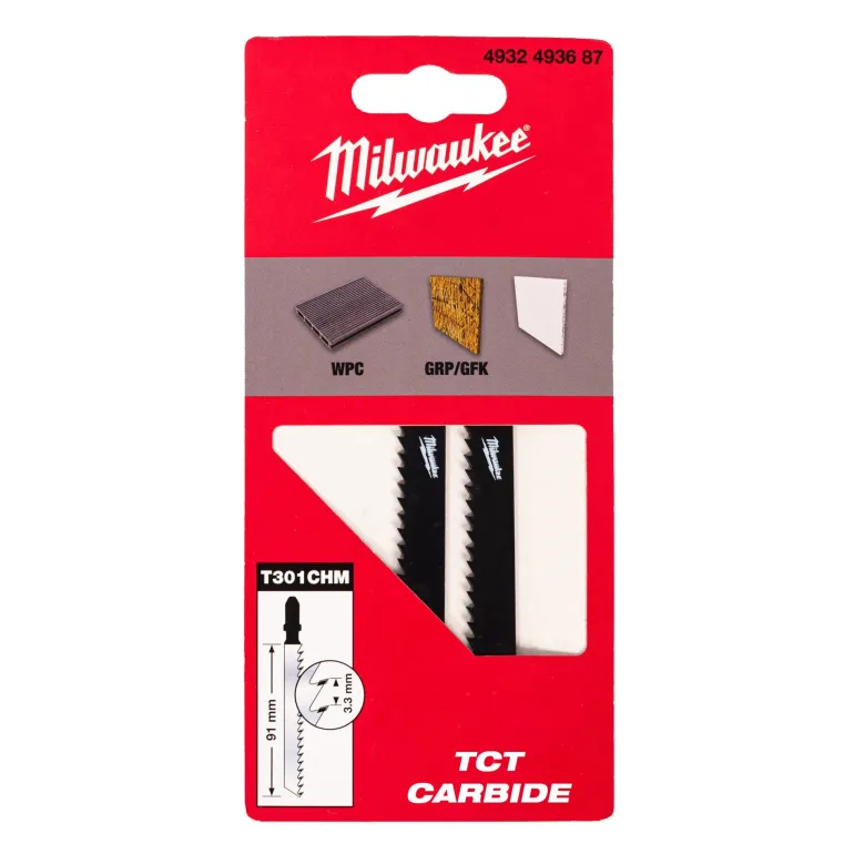 Pistosahanterä, jonka kovametallipäällysteiset hampaat mahdollistavat pidemmän käyttöiän kovia materiaaleja, kuten lasikuitua, lasivahvisteista muovia ja puumuovikomposiittia sahattaessa. Malli erikoismateriaaleille: lasikuitu/vahvistettu muovi/akryylilasi. 2 kpl/pakkaus.