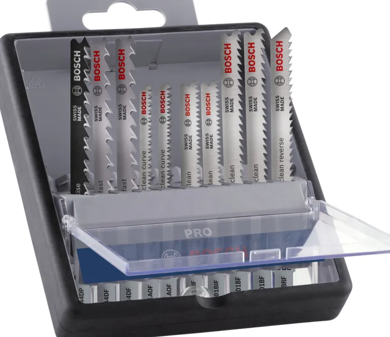 PRO Hardwood and Laminate -sarja on hyödyllinen lattia-asentajille ja puusepille. Sarja sisältää pitkään kestäviä pistosahanteriä, jotka soveltuvat kovan puun ja laminaattilattiamateriaalien nopeaan, siistiin ja suoraan leikkuuseen sekä kaarreleikkuuseen – kerta toisensa jälkeen.
