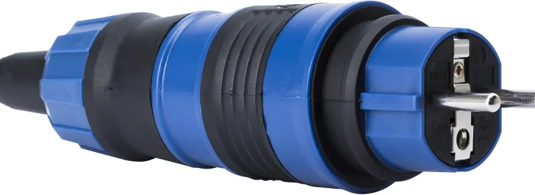 Pistoke hyväksytty ulkokäyttöön. Valmistettu kestävästä kumista/PVC:stä, varustettu murtosuojauksella. Pistoke on IP44-luokitettu.