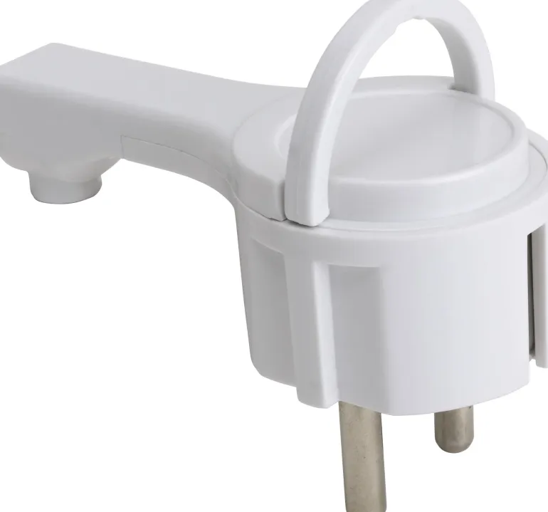 Pistoke, joka ulkonee vain noin 10 mm pistorasiasta ja jossa on sisäänrakennettu kahva, jotta se voidaan helposti vetää irti pistorasiasta.