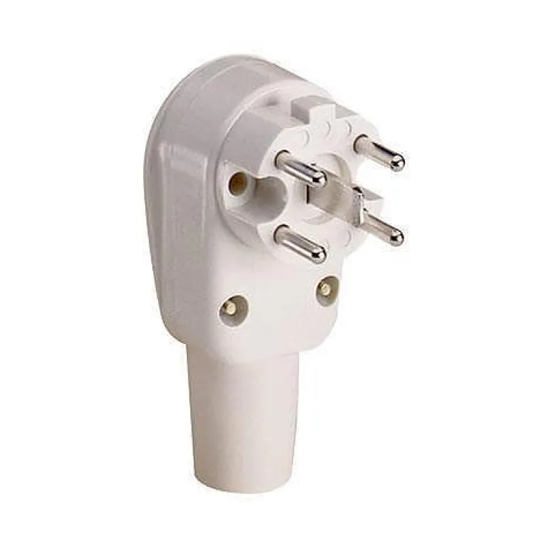 Kulmamallin Perlix-pistoke 16A. Pistokkeessa on IP44-suojausluokka ja kaapeliliitäntä. Neljänapainen, maadoitustapilla.