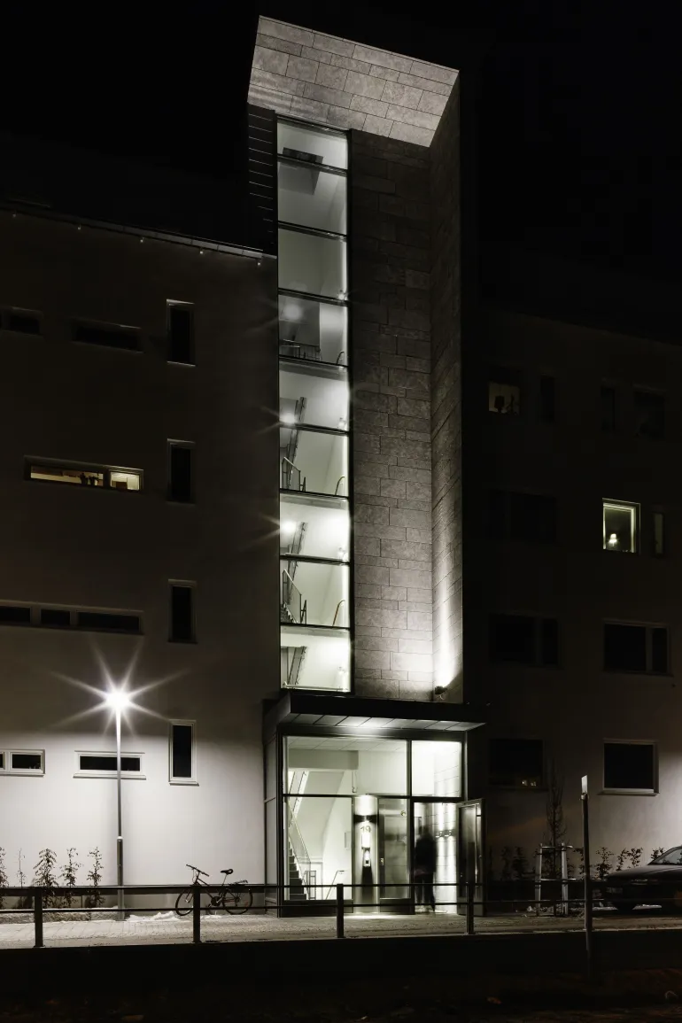 Matalarakenteinen LED-plafondi. Miellyttävä ylösvalo tasoittaa katon tai seinän kontrastia. Värilämpötilaksi voidaan valita DIP-kytkimellä 3000K tai 4000K.