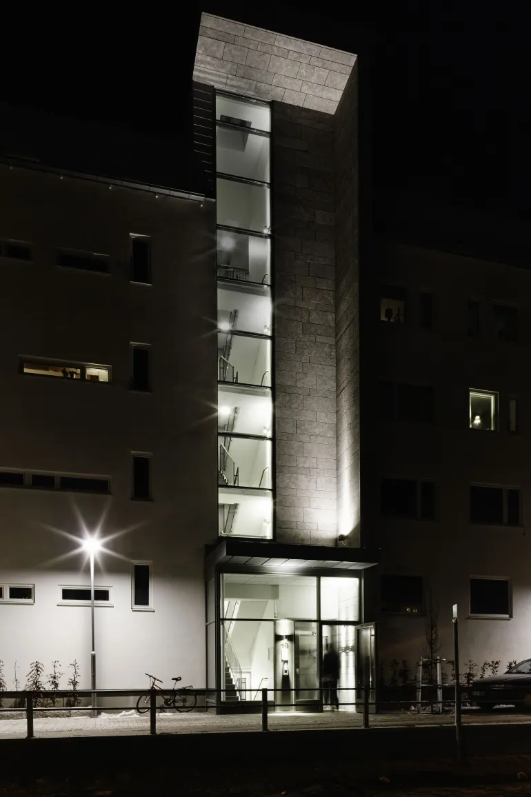 Matalarakenteinen LED-plafondi. Miellyttävä ylösvalo tasoittaa katon tai seinän kontrastia. Värilämpötilaksi voidaan valita DIP-kytkimellä 3000K tai 4000K.