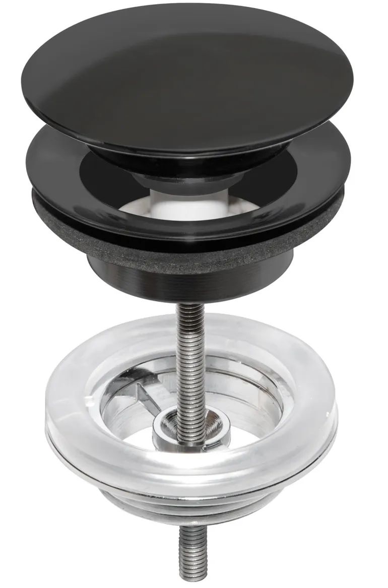 Musta pohjaventtiili, jossa push-down ominaisuus. G32. Painat venttiiliä sulkemista varten ja painat uudelleen avaamista varten. Pesualtaan mitat: min 35 mm, max 90 mm.