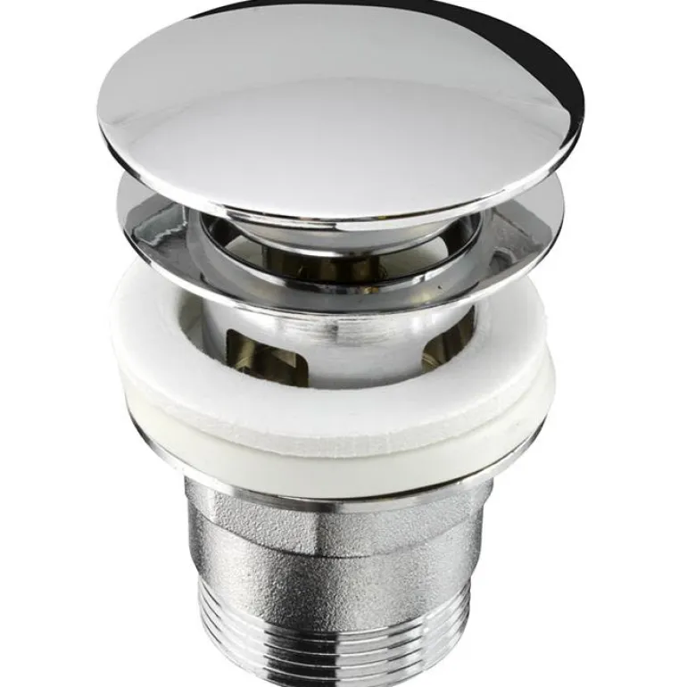 Pesualtaan pohjaventtiili. Varustettu ylivuotoaukolla, joka avataan ja suljetaan venttiiliä painamalla. Pesualtaan alla ei tarvita nostovipua.