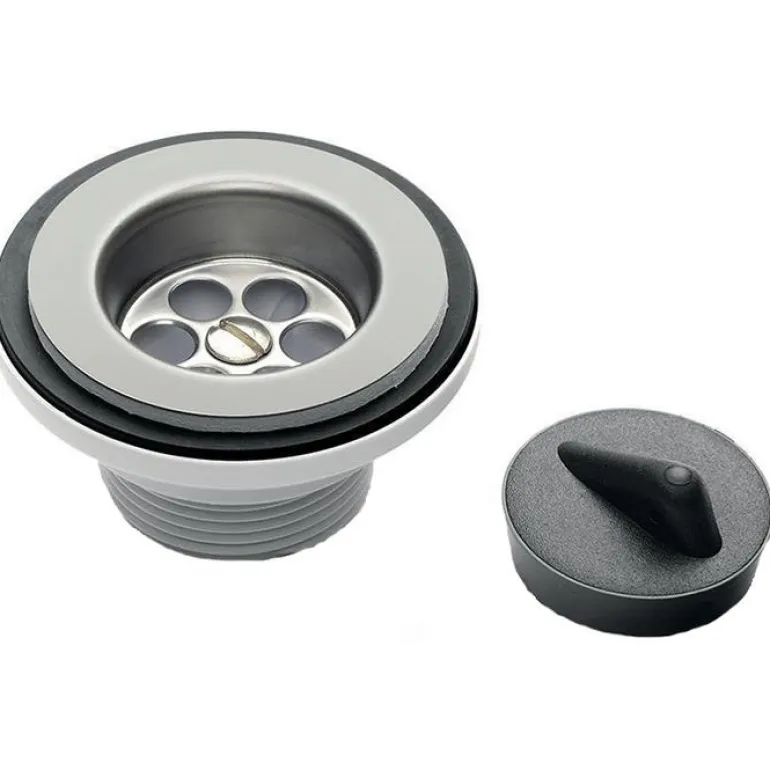 Pohjaventtiili pesualtaalle, reiän koko Ø 50-55 mm. Mukana toimitetaan ruostumattomasta teräksestä valmistettu sihti, tiivisteet, ruuvi ja musta tulppa.