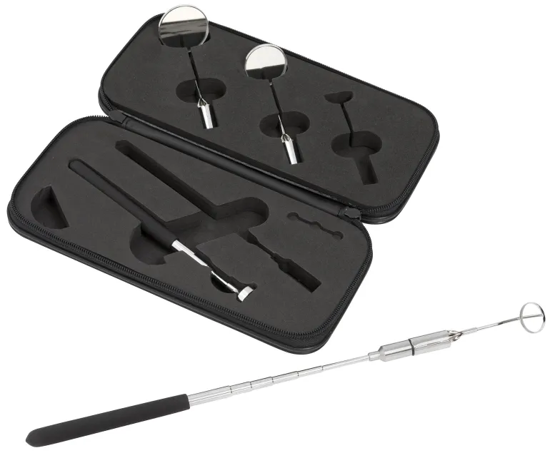 Sarjaan kuuluu 1 teleskooppimagneetti 150-665 LED-valolla, 1 teleskooppimagneetti 150-665 mm 3,5 kg nostovoimalla, 3 tarkastuspeiliä, läpimitat: 21, 31 ja 38 mm. Toimitetaan kätevässä säilytyslaatikossa, mukana 3 LR41-paristoa (1,5V).