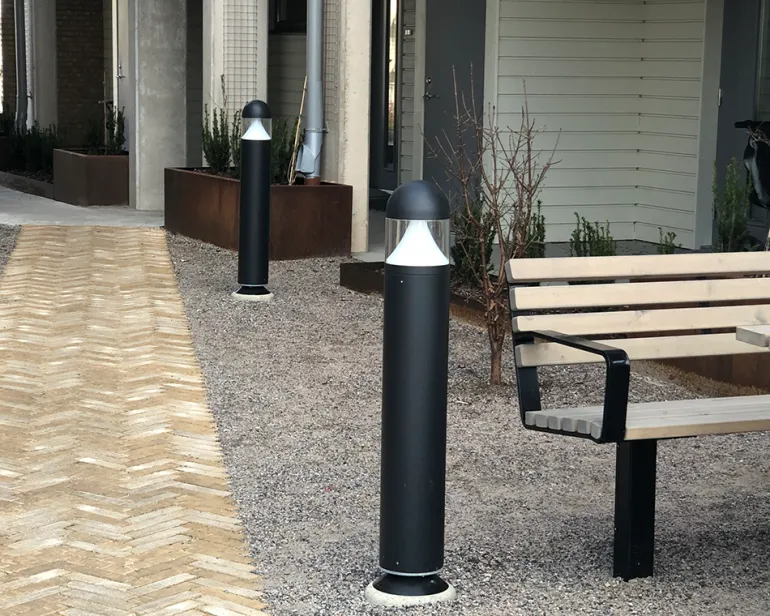 Luna on LED-pollarivalaisin symmetrisellä 360° valonjaolla. Rungon materiaalina on alumiini ja valaisimessa on valkoinen heijastin sekä kupu iskunkestävää polykarbonaattia.