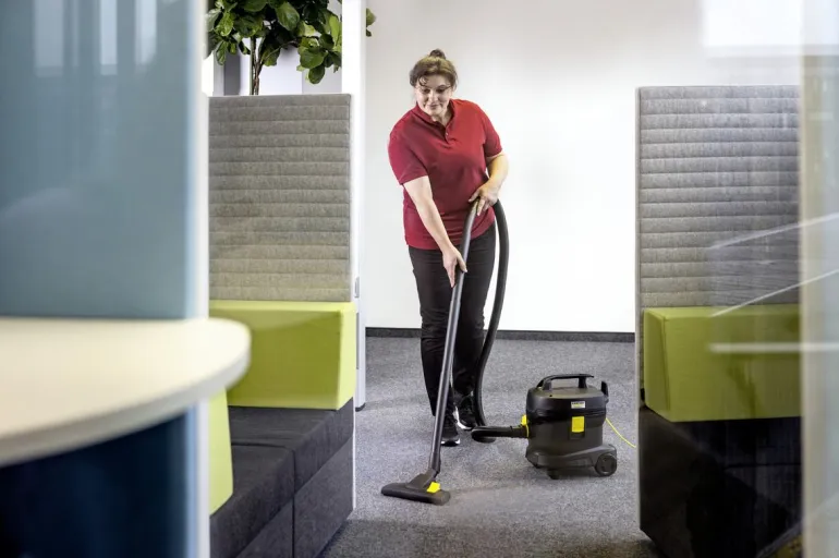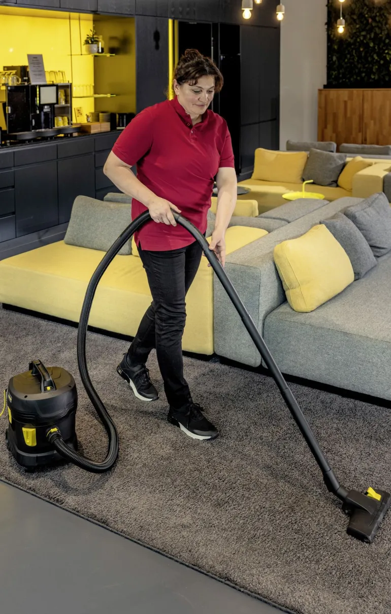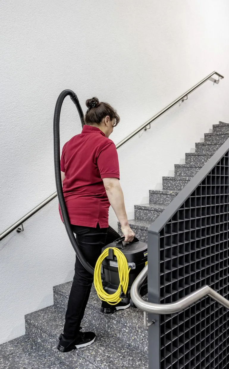 Kärcher T 11/1 Classic Adv Re! pölynimuri vakuuttaa ensiluokkaisella imutehollaan, kestävyydellään ja erinomaisella hinta-laatusuhteellaan. Re!Plast-sarjan imureiden tunnusmerkkinä on musta muovirunko, jonka valmistuksessa käytetään vähintään 60 % kierrätysmuovia. Suuresta imutehosta huolimatta kone toimii alhaisella äänitasolla, vain 61 dB(A), joten se voi hyvin sopia meluherkkiin ympäristöihin. Pölynimuri on kompaktisti muotoiltu kaatumisestolla, ja sen säiliön tilavuus on 11 litraa. Paino vain 4 kiloa. Malli on lisäksi varustettu ergonomisella kantokahvalla ja imuputken kädensijalla/mutkalla, joka helpottaa käsittelyä ja työskentelyä. Mallissa on 12 metrin pituinen vaihdettava virtajohto. Rungossa kätevä säilytyspaikka tarvikkeille, kuten imuletkulle ja lattiasuulakkeelle.