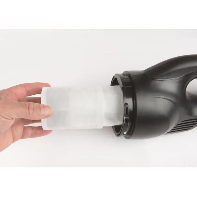 Akkukäyttöinen pölynimuri (18 V), jonka tilavuus on 650 ml ja käyttöaika jopa 20 min.