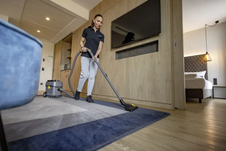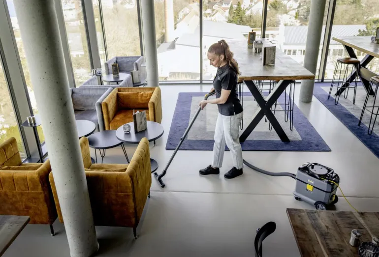 Kärcher T 15/1 Adv HEPA -pölynimuri erottuu ensiluokkaisella imutehollaan, erittäin hiljaisella käynnillään, kestävyydellään, vaikuttavalla hinta–suorituskyky-suhteellaan ja laajalla lisävarustevalikoimallaan. HEPA 14 -suodattimen ansiosta se täyttää korkeimmat turvallisuusstandardit hygieniaherkissä ympäristöissä. Kestävä ja tukeva rakenne törmäyssuojalla ja reilun kokoisilla pyörillä. Uusi tuotantotekniikka mahdollistaa sen, että imurin muoviosista peräti 45 % on valmistettu kierrätysmuovista lujuusominaisuuksista tinkimättä. Vain 52 dB(A):n äänitaso yhdistettynä suureen imutehoon tekee T 15/1 Adv HEPA -mallista ihanteellisen päivittäiseen ammattisiivoukseen ja ääniherkkiin ympäristöihin. Laite on kompakti kaatumista ehkäisevällä muotoilulla, helposti ohjattava, ja sen säiliön tilavuus on 15 litraa. Taitettava kantokahva mahdollistaa ergonomisen kantamisen lähellä vartaloa. Tilava 15 litran säiliö on muotoiltu siten, että imurin kuljettaminen ja säilyttäminen on mahdollisimman helppoa. Rungon kapean muodon ansiosta painopiste asettuu kannettaessa lähelle kehoa.