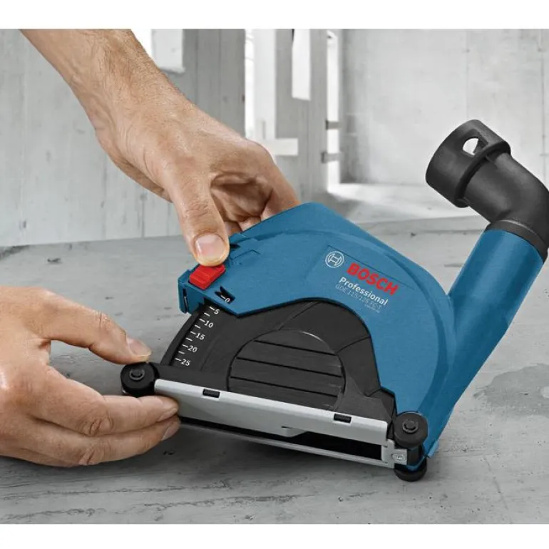 Pölyadapteri pölytöntä katkaisua varten. Sopii Bosch-kulmahiomakoneille, joiden laikan halkaisija on 115 mm tai 125 mm.