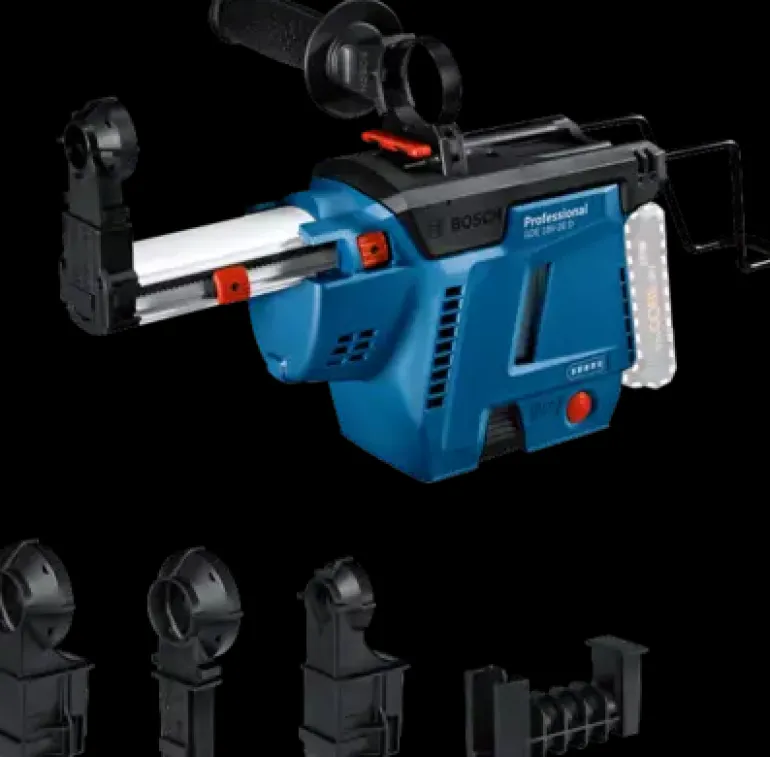 Itsenäisesti toimiva pölynimuri, joka mahdollistaa pölyttömän ja liikkuvan työn, tuottaa mukavan ja siistin tuloksen monissa erityyppisissä poraustöissä. Se voidaan jälkiasentaa käytettäväksi erilaisten Bosch Professional -sarjan verkkovirta- ja akkukäyttöisten poravasaroiden kanssa, ja siinä on neljä vaihdettavaa pölysuojaa kiinteille tai pikaistukoille ja poranterille, joiden halkaisija on enintään 26 mm, sekä jatkokappale terille, joiden pituus on enintään 265 mm.