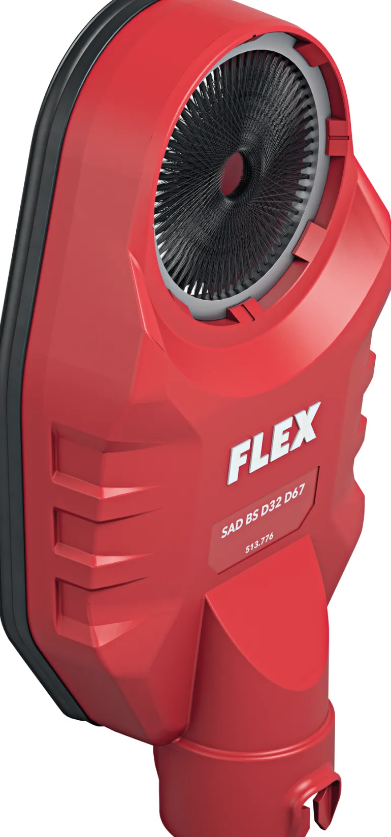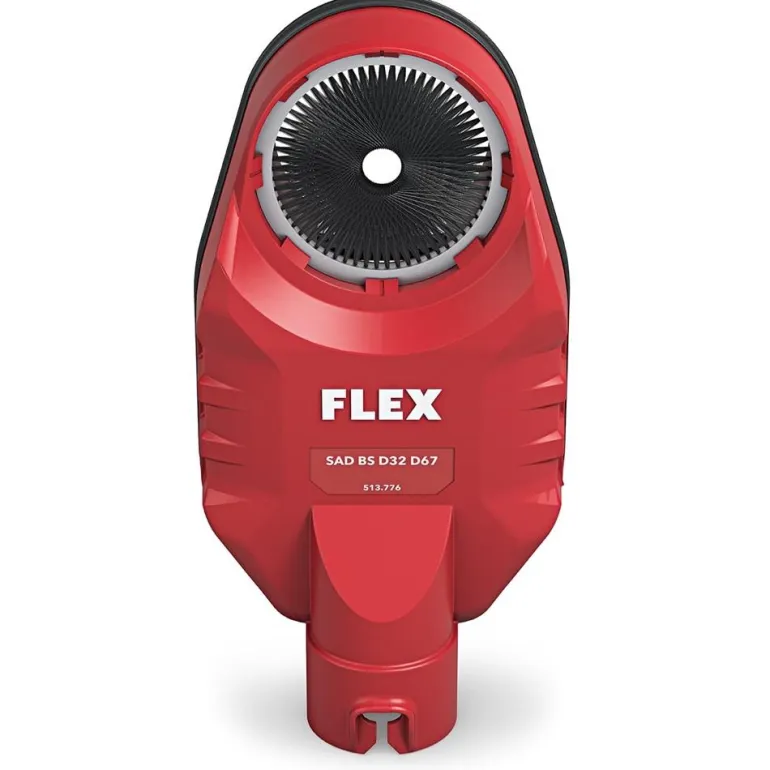 Flex 513776 on pölynpoistosovitin letkuliitännällä Ø32 mm, porauspölylle. Pölynpoistossa on suuri alipainekammio ja pehmeä, joustava kumitiiviste. Tämän ansiosta poran pölysovitin voidaan imeä paikalleen myös epätasaisilla pinnoilla. Tehokas ilmavirta vie porauspölyn ja kuljettaa sen imuyksikköön. Ylimääräinen harjassegmentti sulkee aukon myös pienemmillä poran halkaisijoilla, jolloin pölyä ei pääse vuotamaan ulos. Soveltuu poranhalkaisijoille Ø 67 mm asti.