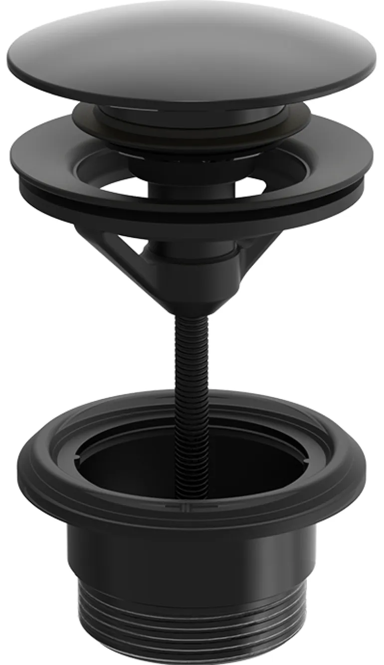 Musta pohjaventtiili, joka avataan ja suljetaan helposti venttiilin painalluksella. Mattamustaa messinkiä, G32.