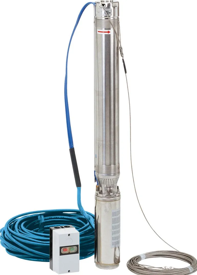 Uppopumppu, joka on tarkoitettu veden siirtämiseen ja jakeluun porakaivoista ja jossa on sisäänrakennettu takaiskuventtiili.