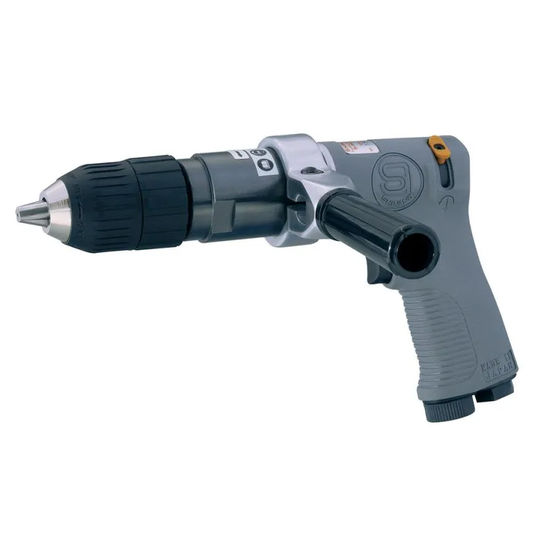 Komposiittimateriaalista valmistettu porakone suunnanvaihdolla. Matala äänenpainetaso ja mahdollisuus muuttaa pyörimissuuntaa otetta muuttamatta.