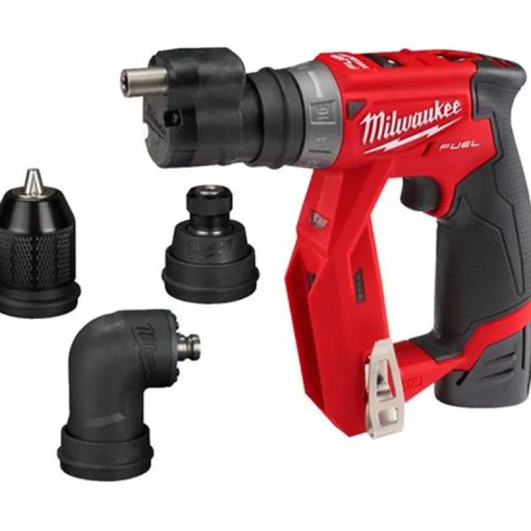 Milwaukee M12 FDDXKIT-202X on tehokas, kompakti, kaksinopeuksinen 12 V:n porakone ja irrotettava istukkajärjestelmä, jolla yhdistät neljä lisäosaa useita sovelluksia varten. Mukana 10 mm:n metalli-istukka, suorakulmalisäosa, offset-lisäosa ja 6 mm:n kuusiokolokiinnitys Mukana on myös akut, laturi ja laukku. Mukana toimitettu laturi lataa työkalun 40 minuutissa. Porakone on varustettu Milwaukeen suunnittelemalla ja rakentamalla hiiliharjattomalla POWERSTATE™-moottorilla, jonka vääntömomentti on jopa 34 Nm. ¼ tuuman kuusiokolo istukan takana, joka tarvittaessa lyhentää poran pituuden 130:een. Istukan kapasiteetti on 10 mm ja ruuvinvääntimen kärkipidike on magneettinen. Kehittynyt digitaalinen REDLINK PLUS™ -elektroniikka suojaa työkalua ja akkua ylikuormitukselta ja parantaa työkalun suorituskykyä kuormituksen aikana. Joustavalla akkujärjestelmällä, joka sopii kaikkiin Milwaukee® M12™-paristoihin.