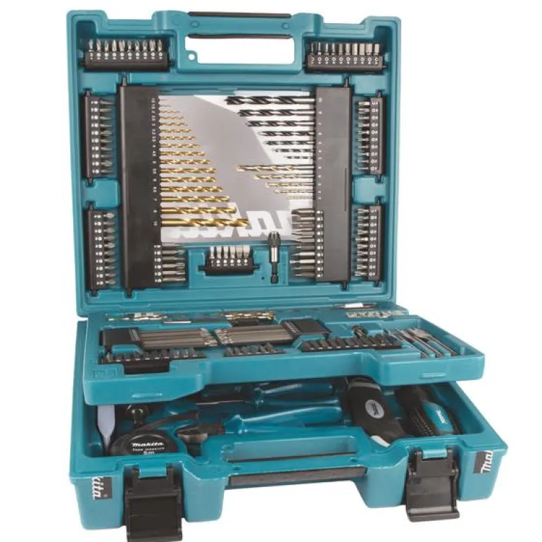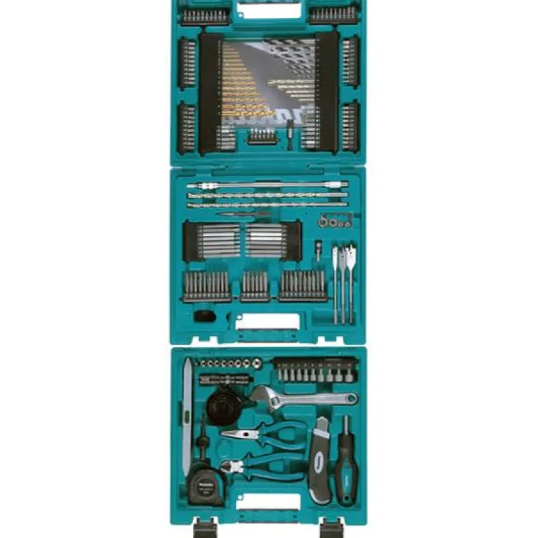 200-osainen poranterä- ja teräsarja. Sisältää seuraavat tuotteet: seinä-, puu- ja metalliporanterät, terät, mattoveitsi, mittanauha, vesivaaka, taskulamppu ym. Toimitetaan käytännöllisessä laukussa.