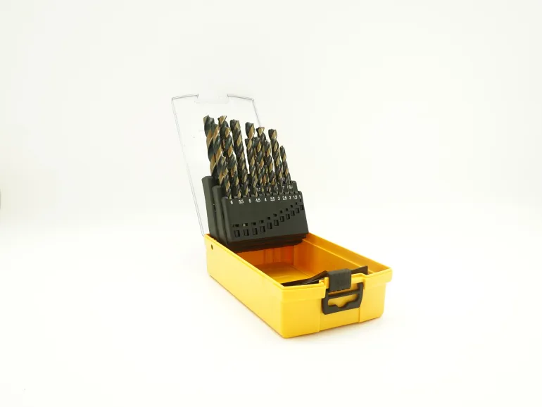 Muovilaatikko läpinäkyvällä kannella, 25 erikoishiottua korkealaatuista pikateräsporaa. HSS 5% kobolttia.