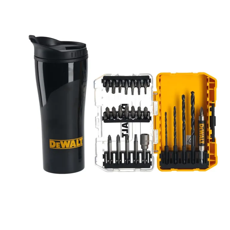 Dewalt DT70707-QZ on poranteräsarja, jossa 19 ruuvikärkeä, 4 poranterää ja muki.
