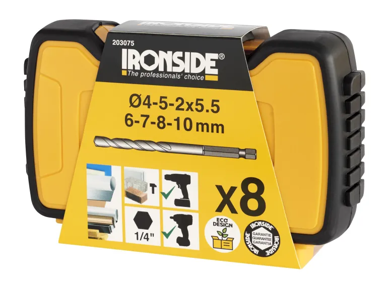 Ironside 203075 on laadukas poranteränsarja monien erilaisten materiaalien poraamiseen. Poranterä kovametallikärjellä lisää kestävyyttä ja monipuolisuutta monien eri materiaalien poraamiseen, kuten betoniin, tiileen, kattotiileihin, ohutmetalliin, keramiikkaan, tiileen, puuhun, PVC:hen, alumiiniin, kipsiin ym.