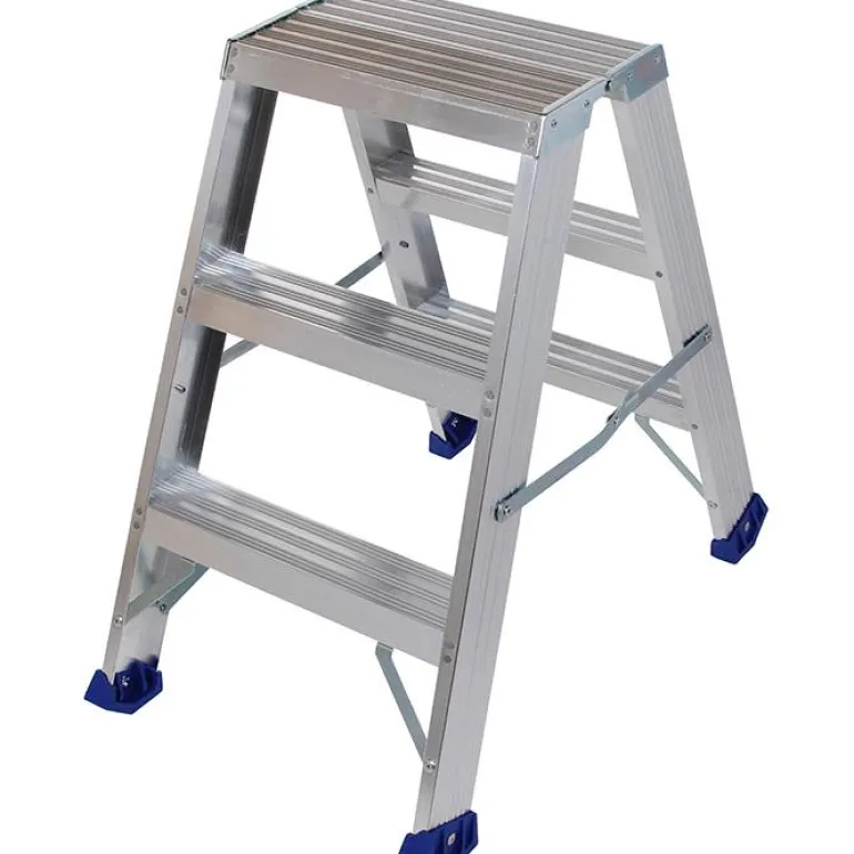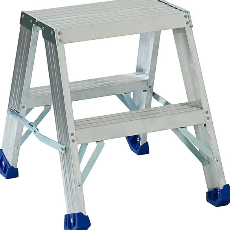 Porrasjakkara alumiinia – päivittäiseen ammattikäyttöön. Porrasjakkaran tason mitat ovat 385 x 250 mm ja askelmien syvyys on 81 mm. Jakkarassa on kaksi askelmaa, ja tason korkeus on 475 mm. Sopii erinomaisesti myös ahtaissa tiloissa työskentelyyn.