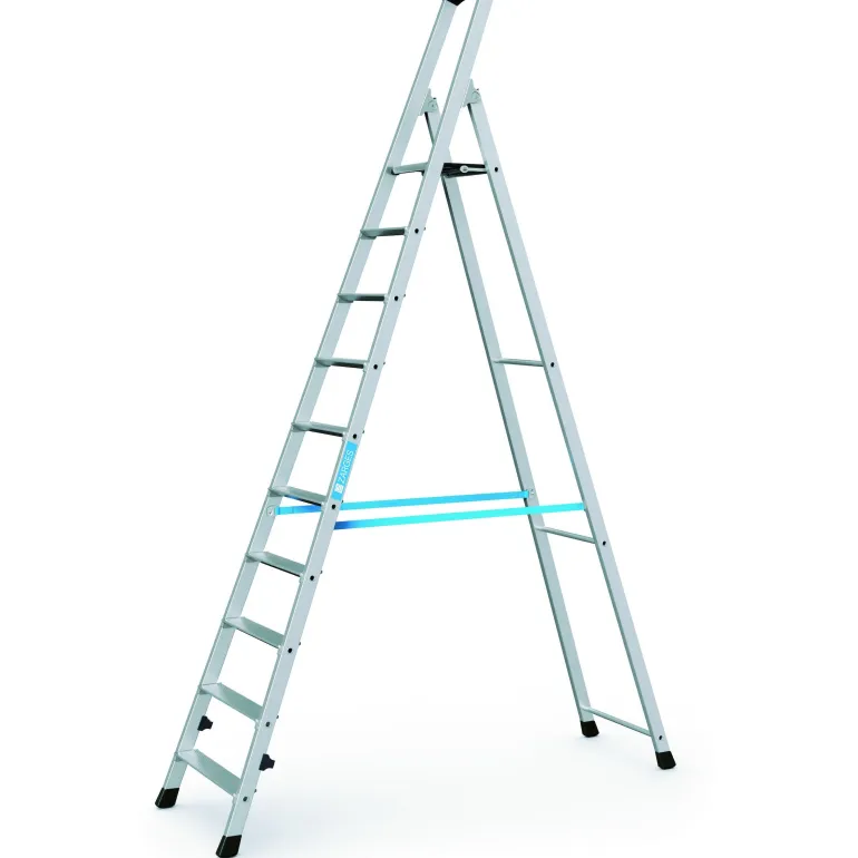 Vankat ja turvalliset porrastikkaat käytännöllisellä työkaluhyllyllä. Patentoidun rakenteen ansiosta tikkaat pysyvät vakaina ja turvallisina. Askelman ja sivutuen välinen laippakiinnitys takaa pitkän käyttöiän. Puristetusta alumiiniprofiilista valmistettu taso on optimaalisen vakaa. Askelman ja sivutuen välissä on lisätukena perlonhihna. Liukuesteet kaksikomponenttista kumiseosta – varma kiinnitys ja suuri kitka. Täyttää Ruotsin työympäristölaitoksen määräyksen AFS 2004:3.