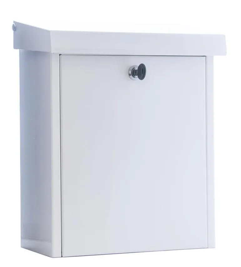 Lukittava postilaatikko skandinaavisella muotoilulla päivittäiseen postin käsittelyyn. Jauhemaalattua teräslevyä. Esiporatut reiät kiinnitystä varten.