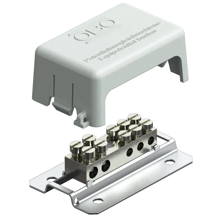 Potentiaalintasauskisko pienille laitekokoonpanoille. Liitännät: 3 monijohdinkaapelia 6 mm²:iin asti. 2 monijohdinkaapelia 16 mm²:iin asti. Suojakansi harmaata polystyrolia. Pohjalevy nauhasinkittyä terästä. Kontaktilista ja ruuvit nikkelipinnoitettua messinkiä