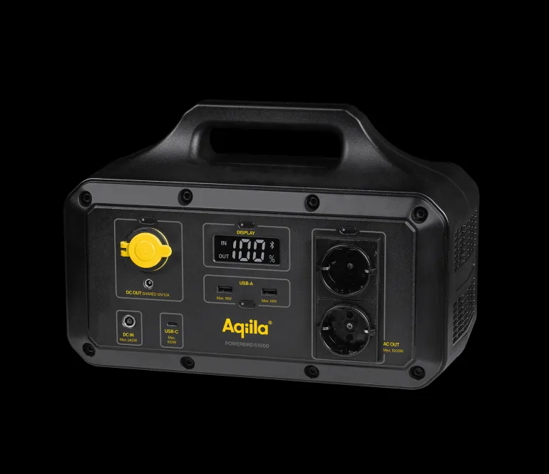 Aqiila Powerbird S1000 on kompakti virta-asema, jonka avulla voit syöttää virtaa laitteillesi missä ikinä oletkin. Virtapankin tavoin se voi ladata laitteesi ja mahdollistaa niiden käytön tien päällä. Täydellinen virtalähde esimerkiksi asuntovaunussa, vajassa tai jos sinun on työskenneltävä ulkona maastossa. Tämä on hyödyllinen ja kätevä virta-asema, jossa on integroidut turvaominaisuudet. Voit ladata virta-aseman myös aurinkopaneelin avulla.